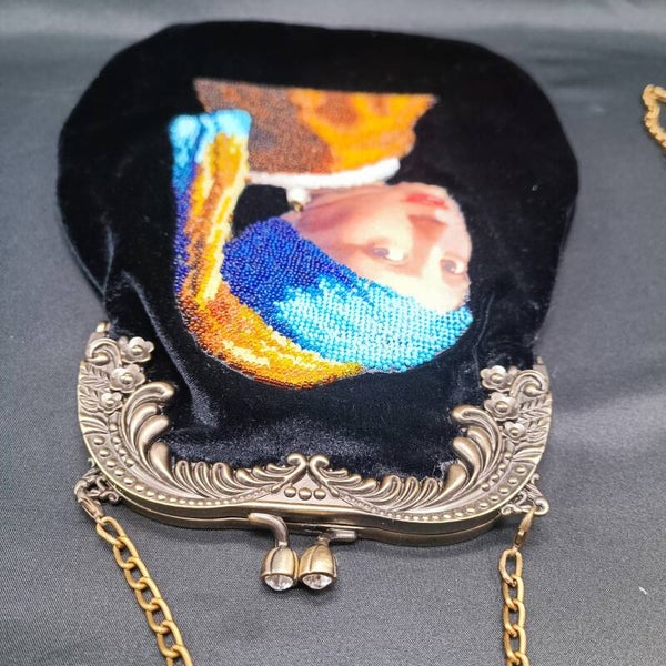 Sac pochette Noun, Pouch, Buckette Embroderie Luxe avec fermoir métallique, fait main Artisanal