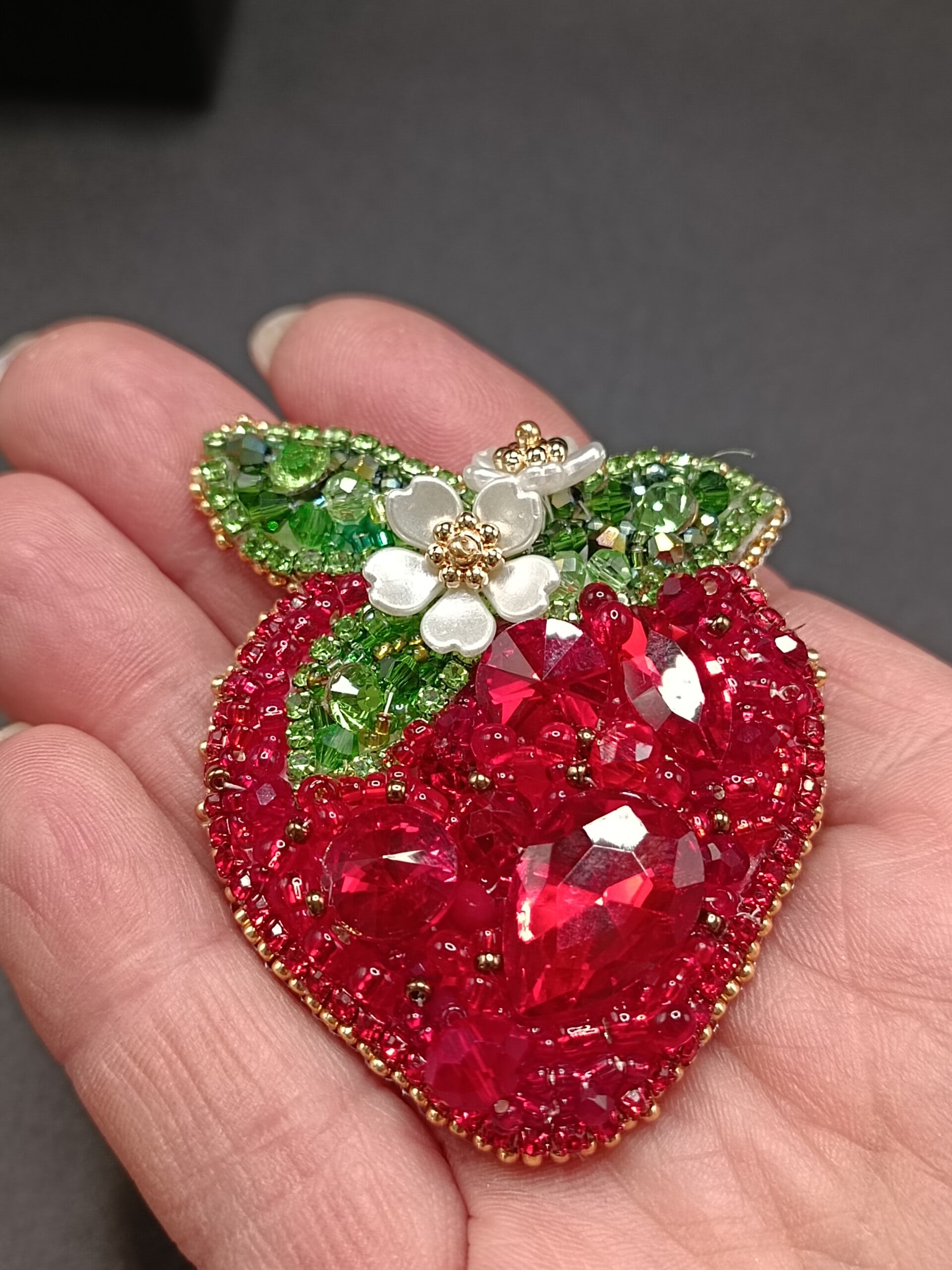 Broche maitrise en perles japonaises et cristaux Autrichiens