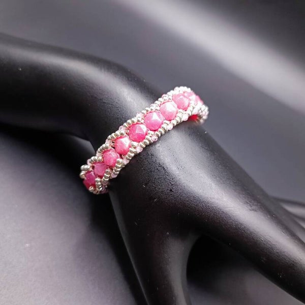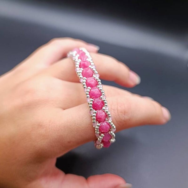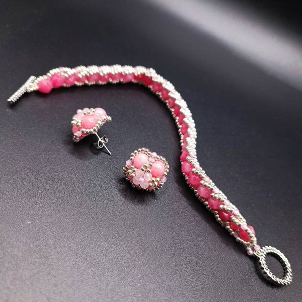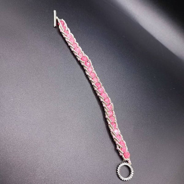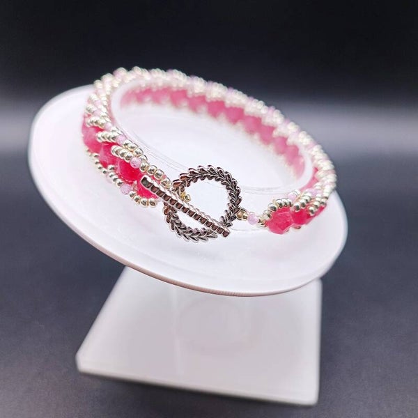 Bracelet "Fiona" tissé en Quartz Fraise et Perles Miyuki fermoir Toggle