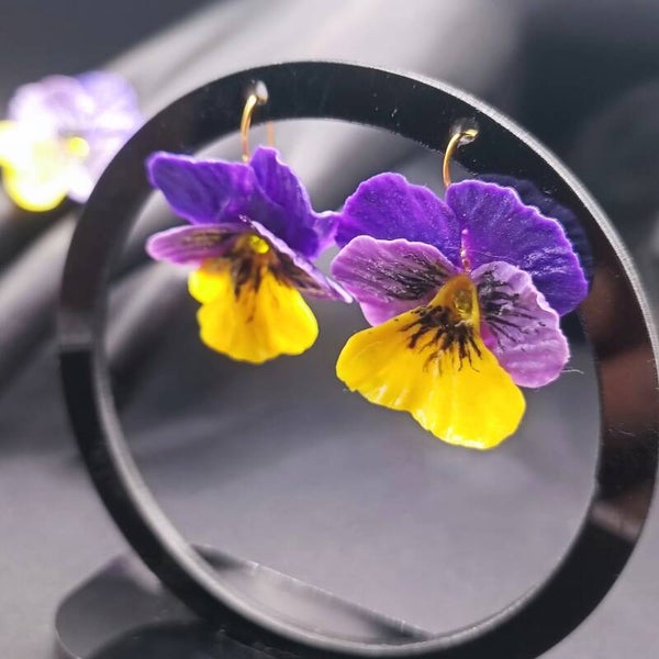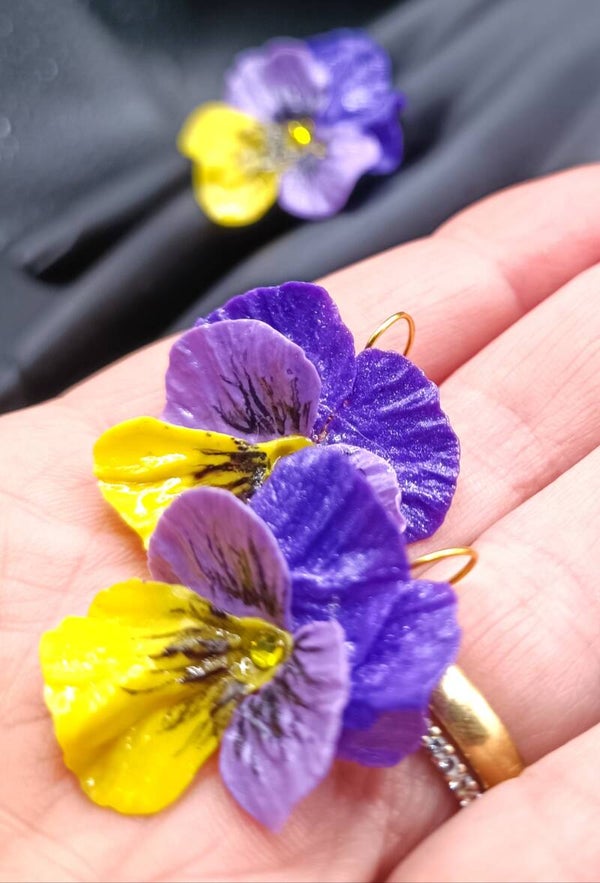 Boucles d'oreilles Crochets "Pensées" en Cernit