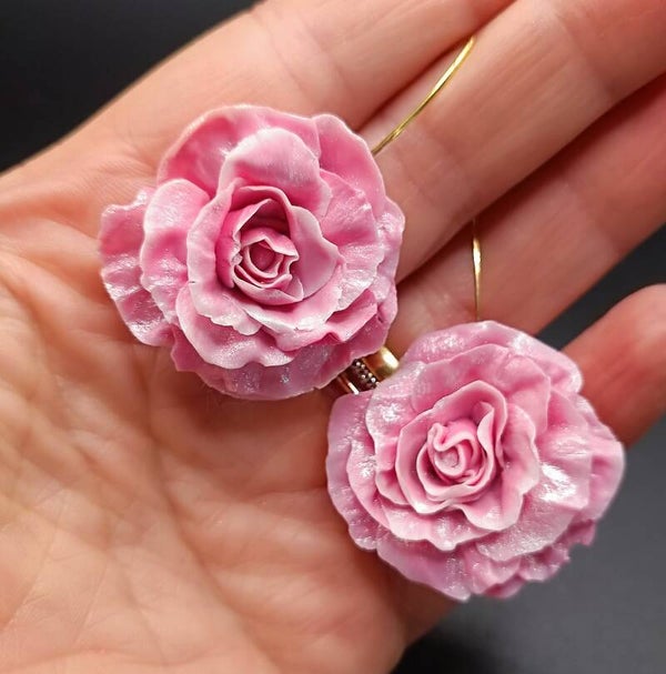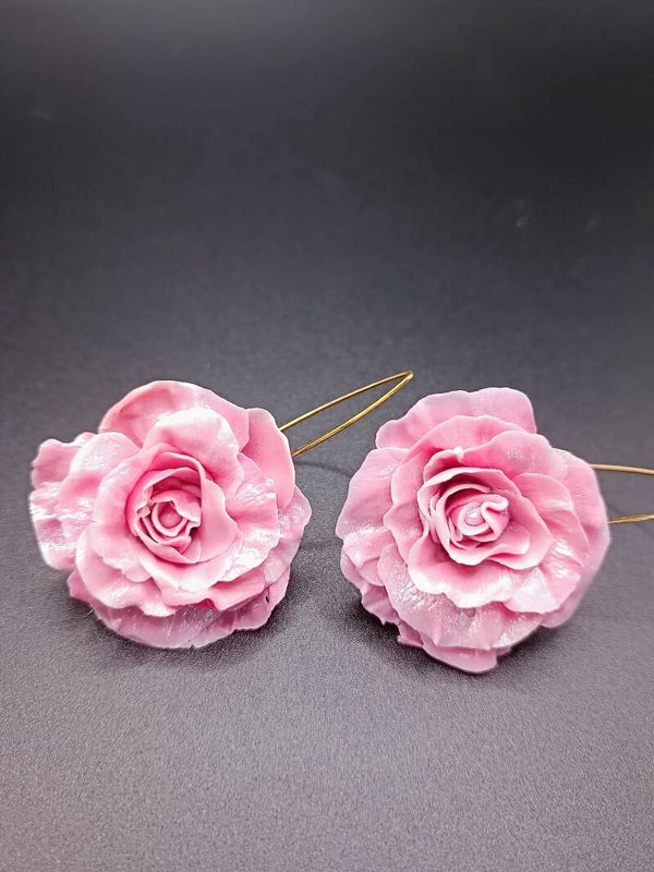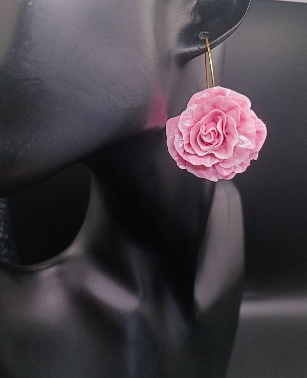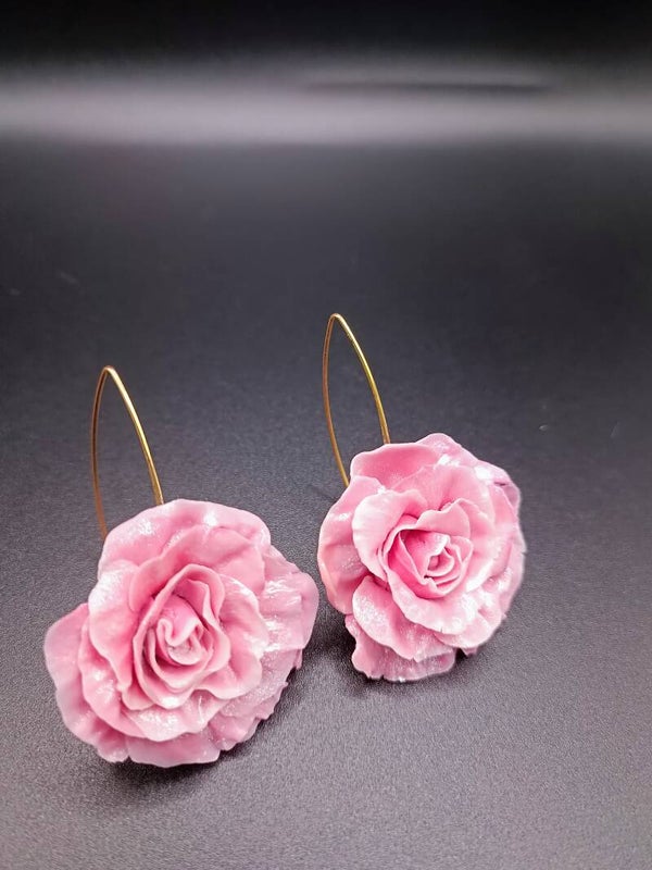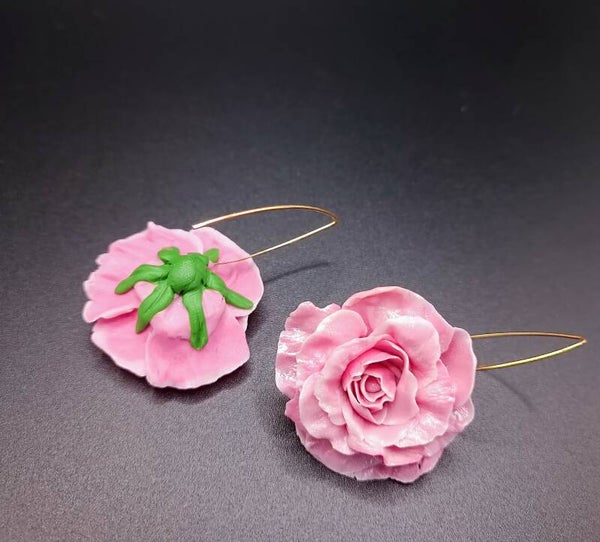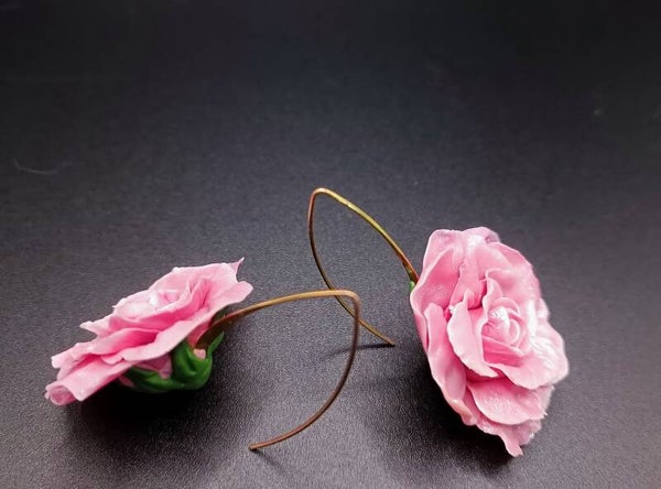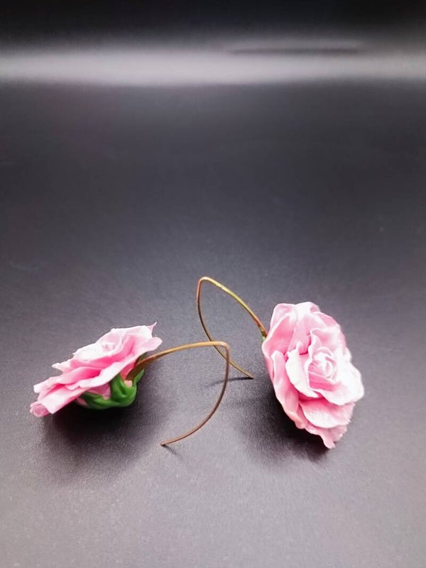 Boucles d'oreilles Crochet Long "Rosier CARMÉLINE" en Cernit - pâte polymère