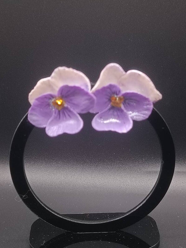 Boucles d'oreilles Clous "Les Pensées Viola Cornuta" en Cernit - pâte polymère