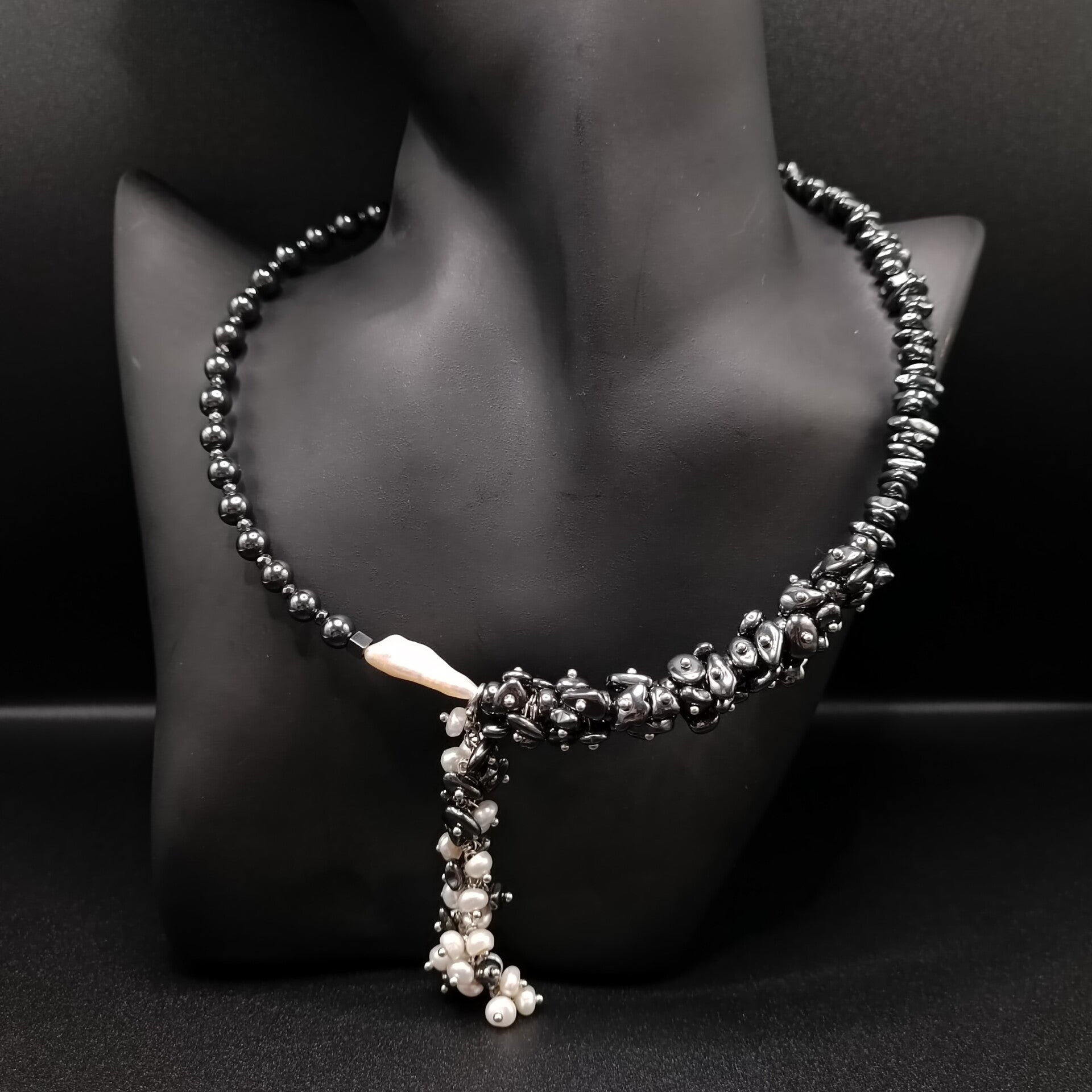 Ras de Cou composé de perles de HEMATITE avec Nacre Blanche