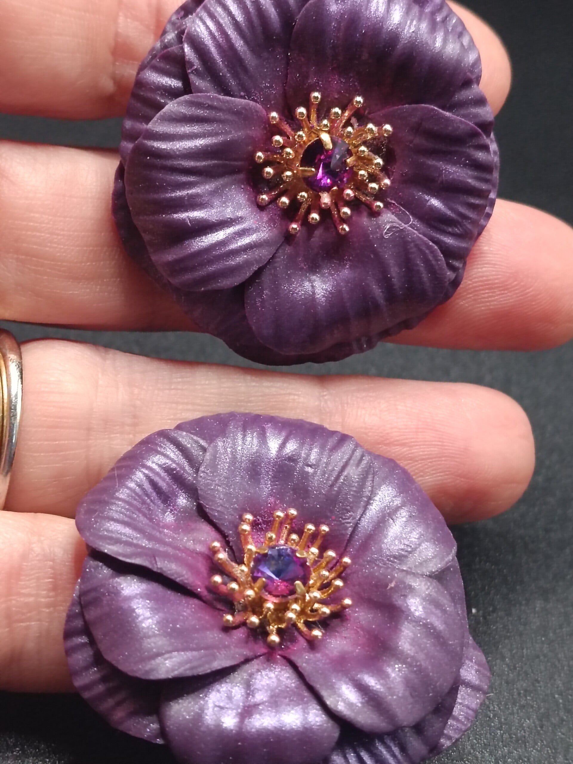 Boucles d'oreilles Dormeuses "Anemones Violets" en Cernit - pâte polymère