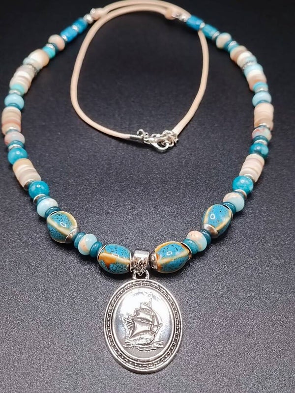 Collier Bohème Homme en JASPE OCEAN, HOWLITE Coquillage blanc naturel