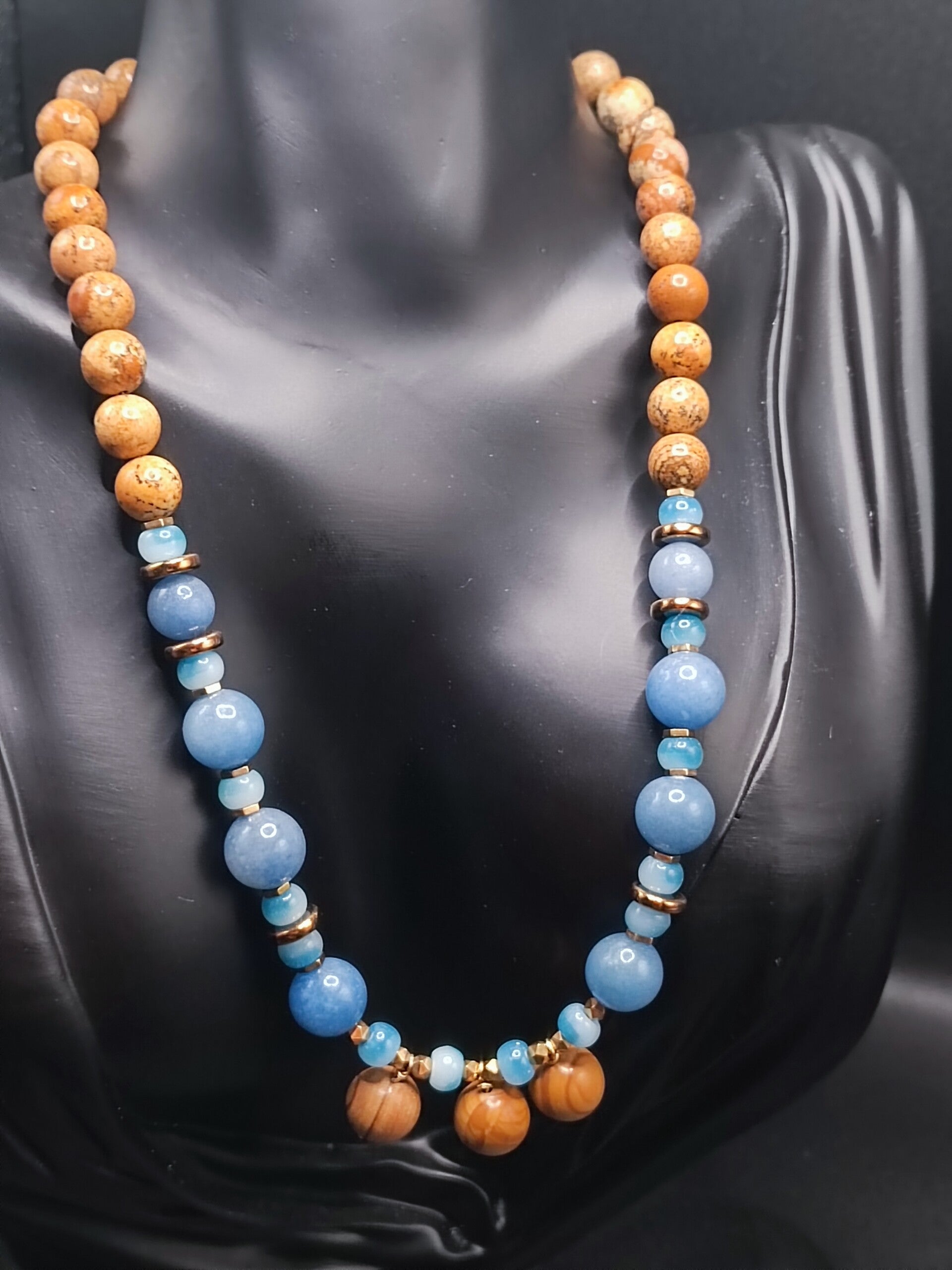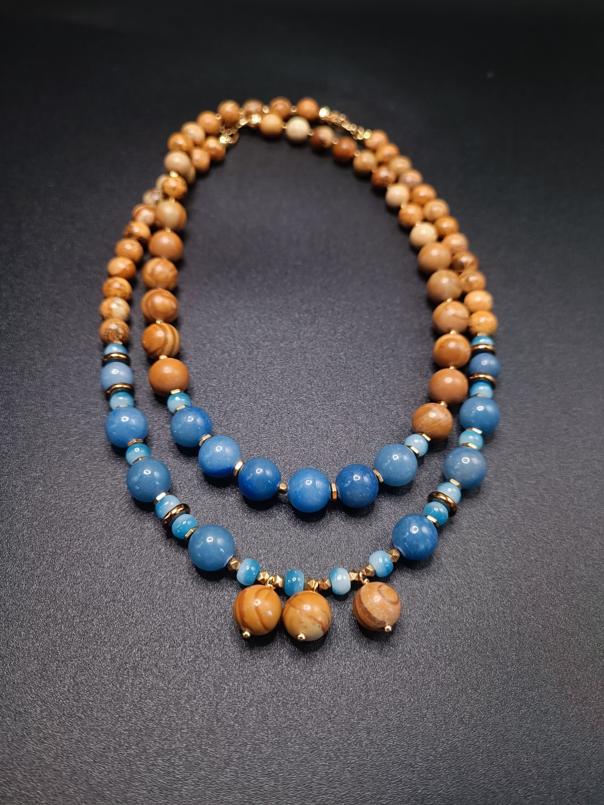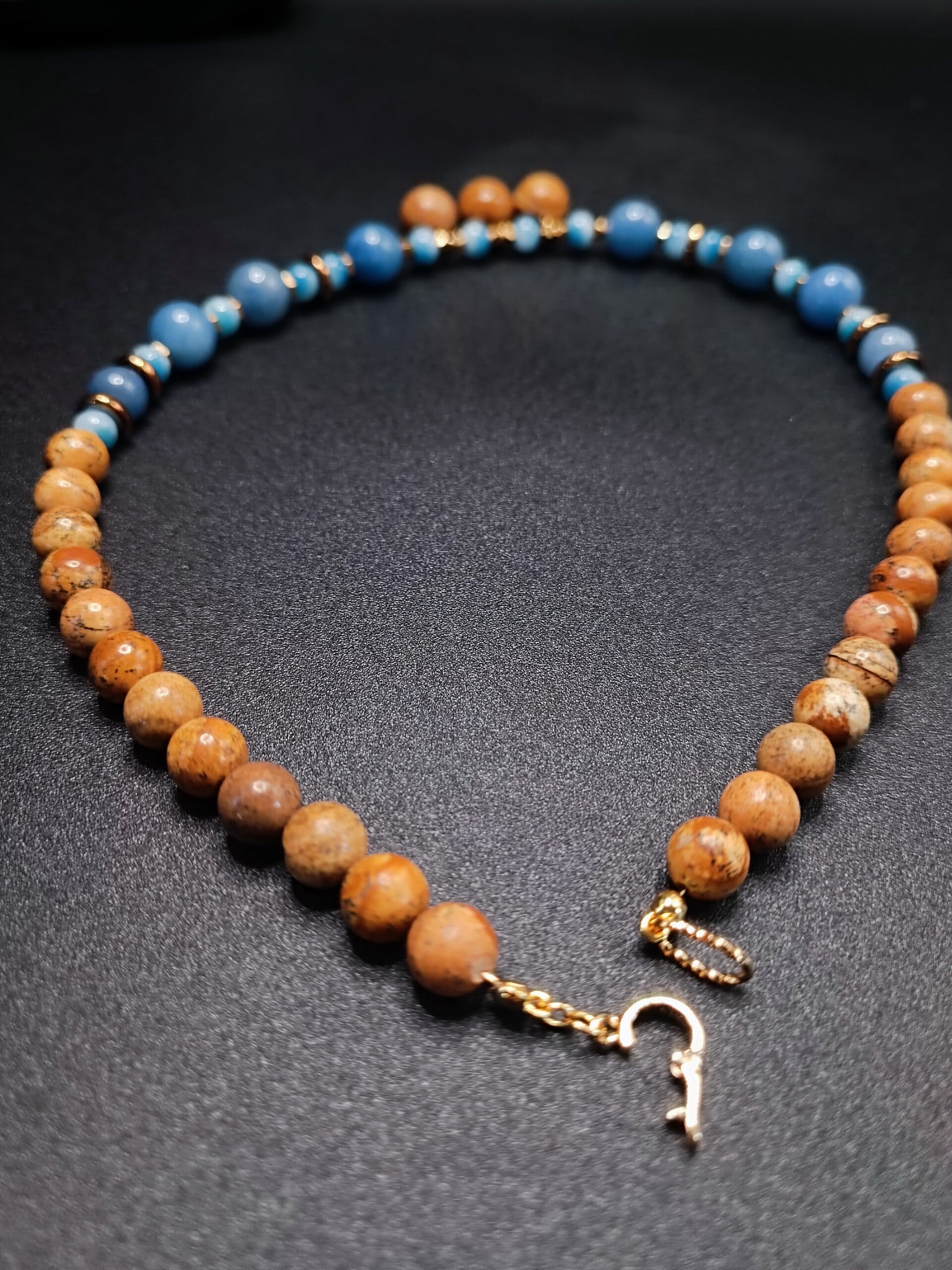 Type de bijoux: Collier en JADE IMPERIALE & JASPE BRECHIQUE (paysage)