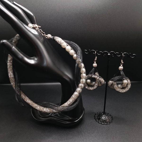 Boucles d'oreilles Crochets en Tubes en Nylon & Perles Nacrée