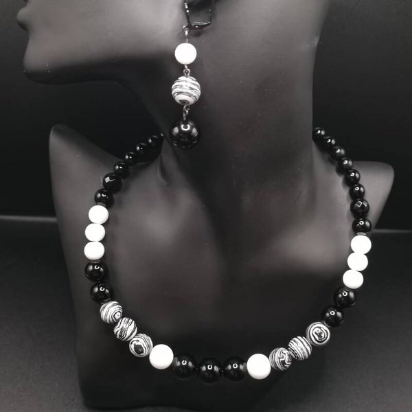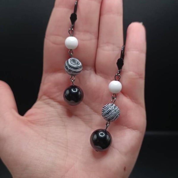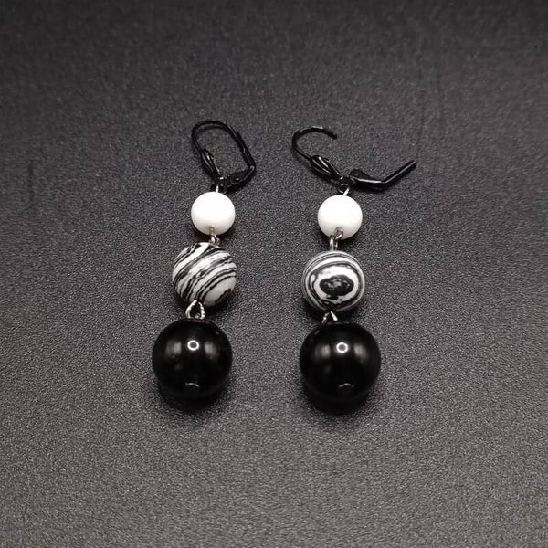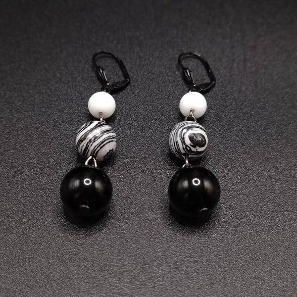 BOUCLES D'OREILLES en JASPE ZEBRE, ONYX, AGATE BLANCHE : 10,12 mm