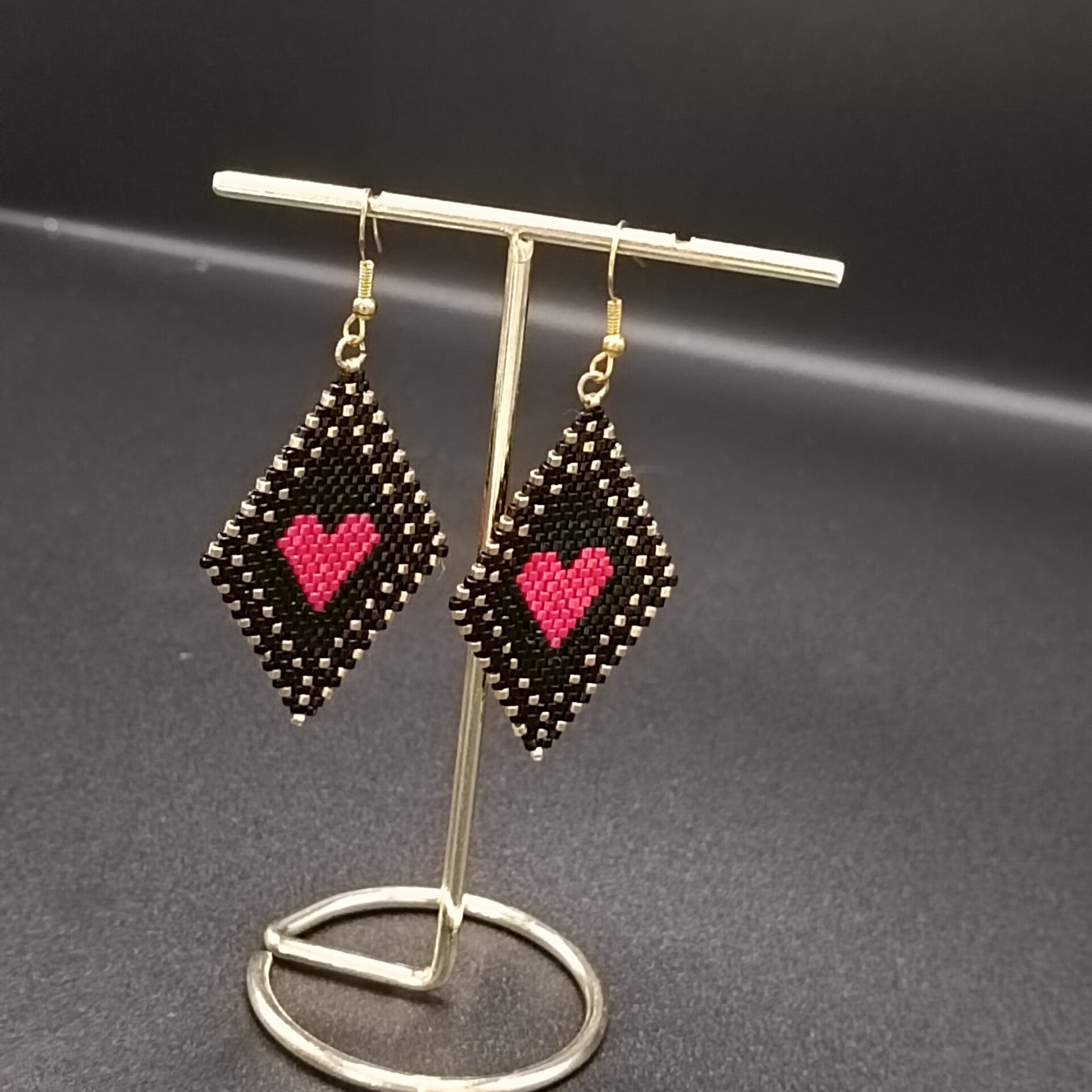 Boucles d'oreilles Crochets Rouge, noir et Doré tissées Brick Stitch en Perles Miyuki Delika