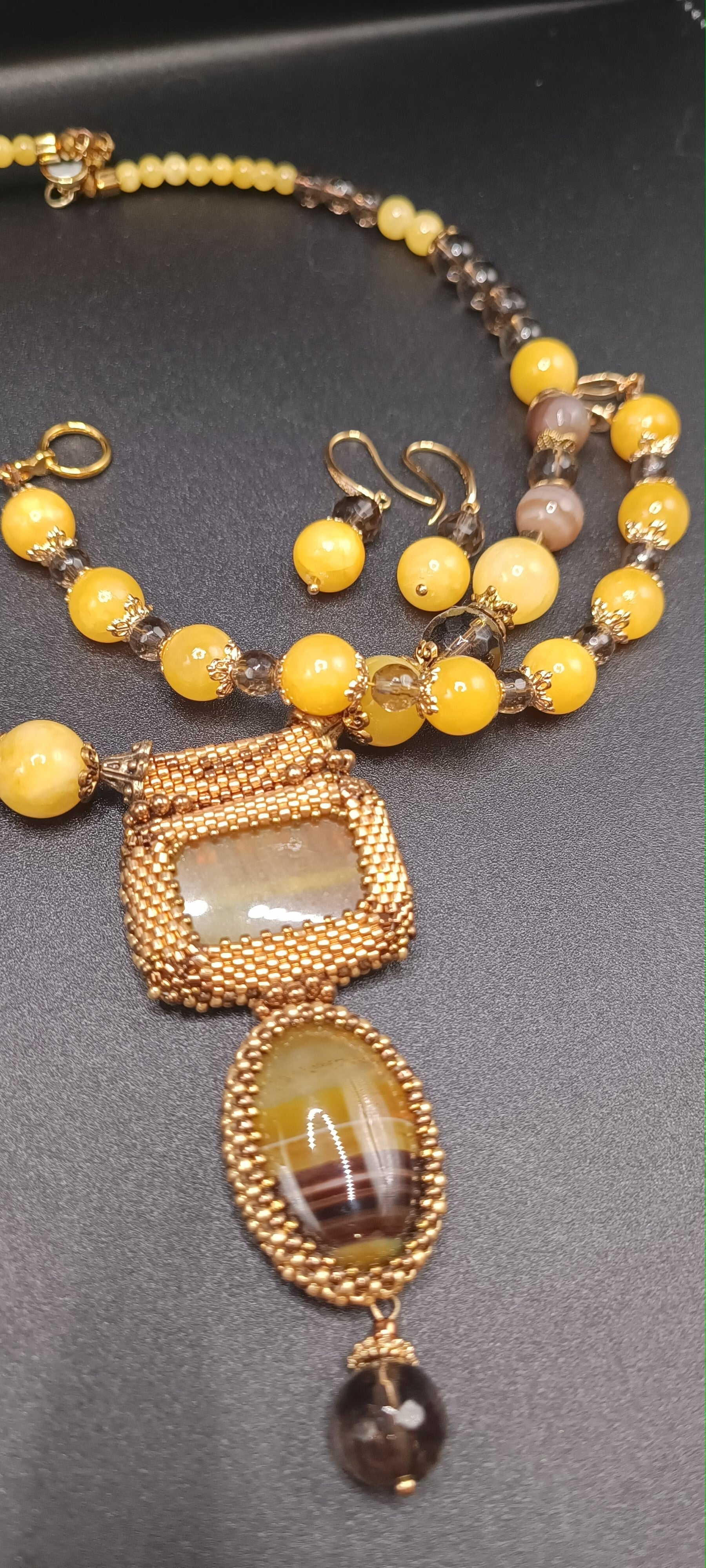 Boucles d'oreilles en Agate jaune Dore et