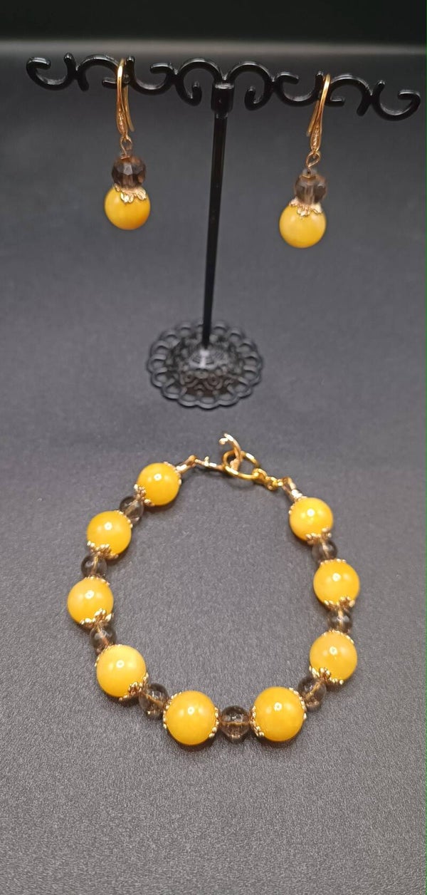 Bracelet Clapet en Agate Jaune Doré 8 mm et Quartz Fume facette 6 mm "Desert Sunset"