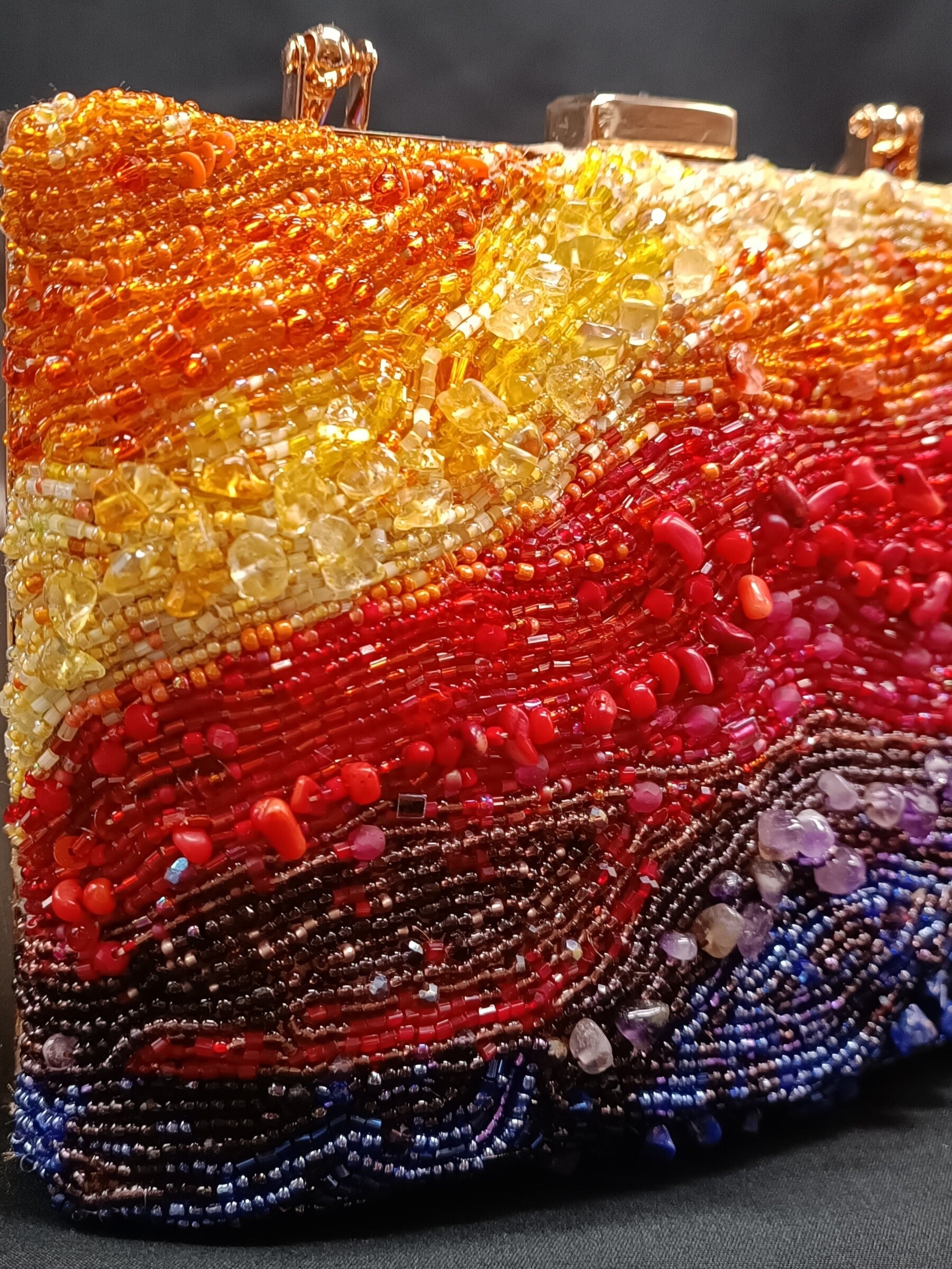 Broderie en perles et pierres naturelles: Calcite, Citrine, Corail, Amethyste, Lapis-Lazuli