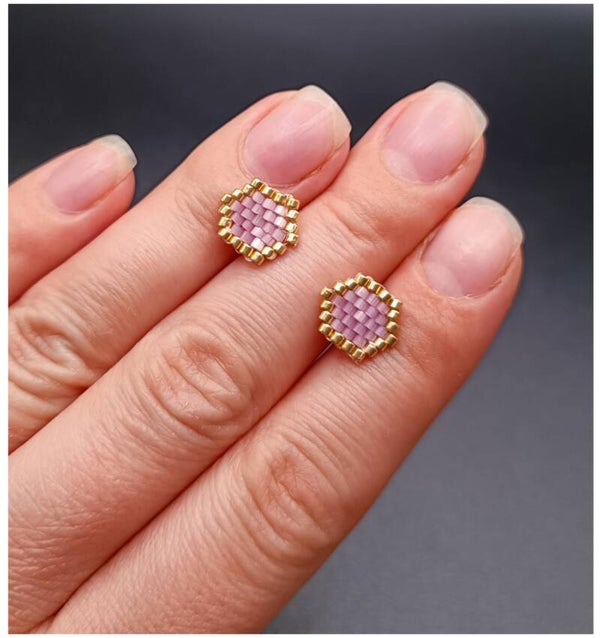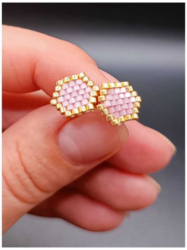Boucles d'oreilles Clous puces tissées Brick Stitch en Perles Miyuki Delica