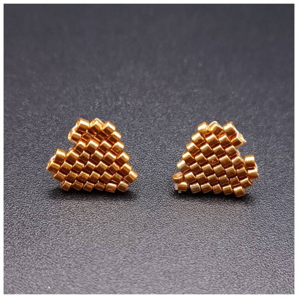 Boucles d'oreilles Clous Coeur Dore tissées Brick Stitch en Perles Miyuki Delica