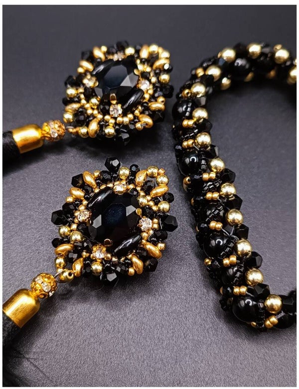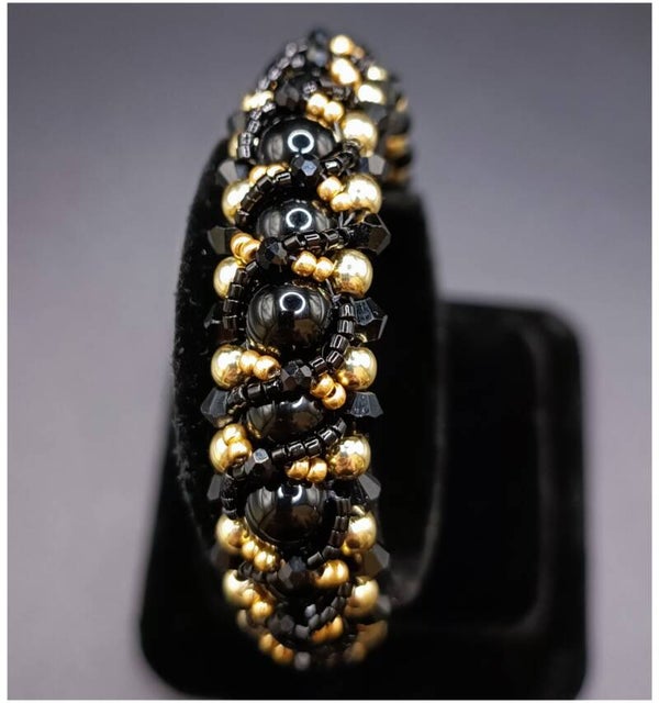 Bracelet tissé en Perles Noir et Doré et Onyx