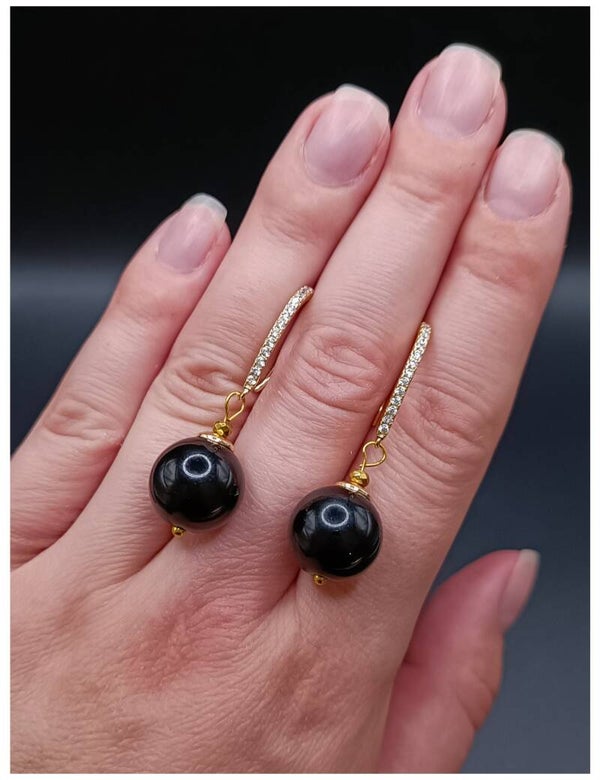 Boucles d'oreilles en Onyx Boules rondes 10mm