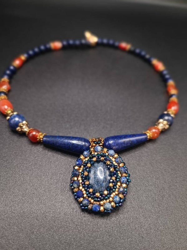 COLLIERS en CORNALINE & LAPIS-LAZULI